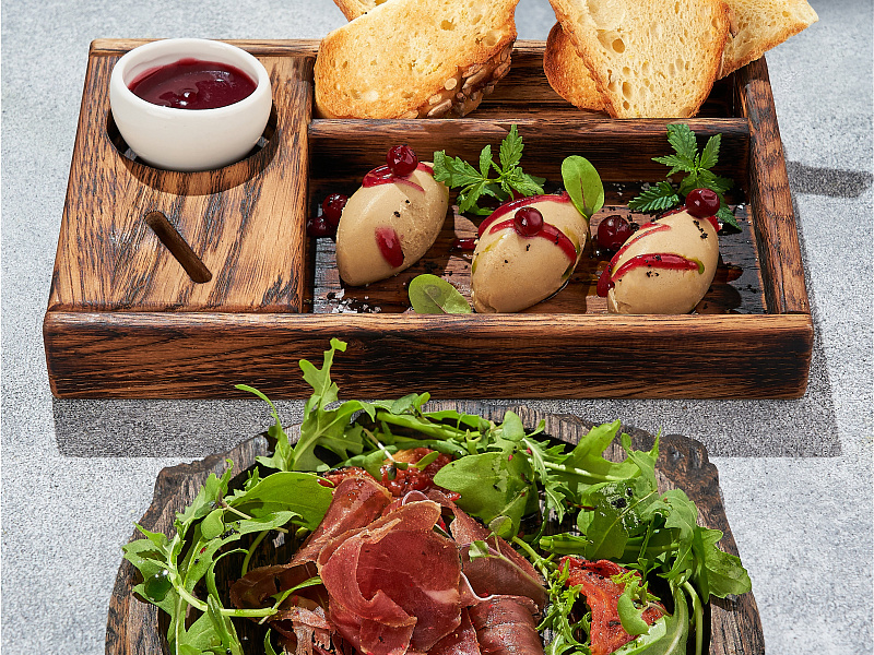 Мы готовим из всего, что было добыто на охоте и рыбалке. В программе – блюда из мяса лося, северного оленя, дикого кабана, зайца, дикой перепелки, утки, косули, цесарки, бобра. Для ценителей рыбы и морепродуктов – устрицы, гребешки, краб, морские ежи из аквариума, а также волжский судак в сливочном соусе, строганов из рапанов и многое другое.