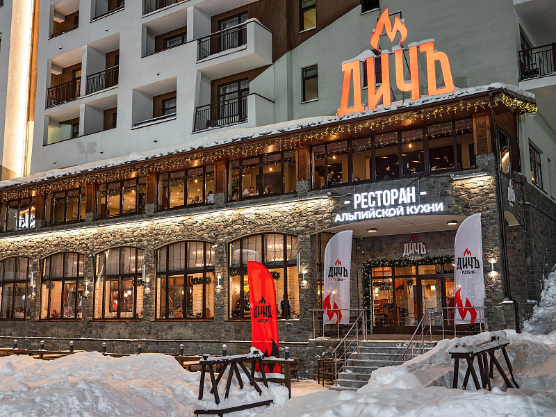 Заведение находится вблизи подъемника «Шале» в самом центре