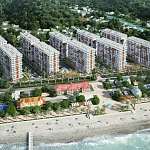 ЖК расположен на первой береговой линии, на ровном участке площадью 52 100 кв.м., правильной формы, без ощутимых перепадов высот; Территория имеет уникальное озеленение, состоящее из вечнозеленых хвойных и реликтовых растений, аккуратных газонов и клумб с сезонными цветами.