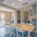 В 50 метрах от комплекса расположена прогулочная набережная реки Псахе, выйти на которую можно с придомовой территории. А также автобусная остановка, продуктовый рынок и магазины. Дорога к морю займет 2-5 минут по благоустроенной набережной.