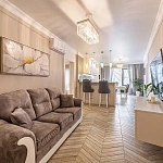Благоустроенная придомовая территория, спортивная площадка, детская игровая площадка, зона отдыха.