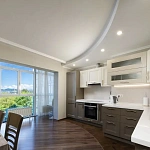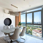 Видовая квартира с дизайнерским ремонтом располагается в ЖК "Виктория", находится в мкр. Новый Сочи.