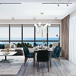 Строительные стандарты полностью соответствуют статусному расположению: вентилируемый фасад из натурального травертина, панорамное остекление с применением мультифункционального энергосберегающего стекла, террасная доска на балконах, высота потолков 3 метра, встроенные в пол отопительные приборы, подземный паркинг и приватные дворики для апартаментов первого этажа. Планировочные решения здания позволили нам открыть вид на море практически с каждого апартамента и предусматривают обширные возможности объединения. Благодаря этому площадь апартаментов варьируется от 40 до 400 кв.м.