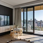 Отель апартаментного типа - это эксклюзивный комплекс апартаментов возведенный с применением монолитной технологии. Апартаменты расположены на охраняемой территории Государственного учреждения "Санаторий Беларусь". В непосредственной близости от государственной резиденции Президента РФ "Бочаров Ручей". На территории расположен собственный пляж, дендрологический парк, открытый и закрытый бассейн, спортзал, теннисные корты, спортивные площадки, лыжно-роллерную трассу, кафе, зону отдыха, а так же полный комплекс медицинских услуг оказываемых санаторием. Вид из окон преимущественно на черное море. Покупка апартаментов осуществляется по 44 ФЗ.