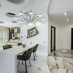 Монолитные стены каскадной постройки имеют исключительно современную отделку, панорамное остекление и расширенную инфраструктуру. Пентхаусы, двух ярусные и обычные роскошные квартиры находятся в двух смежных корпусах соединенных между собой витражной галереей удивительного исполнения. Дорогие материалы подчеркивают статус всей новостройки в Сочи.
