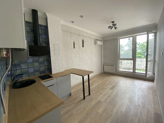 Просторная студия, небольшой балкон с потрясающим видом, высокий этаж.