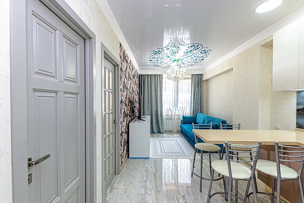 Продается квартира с новым ремонтом, мебелью и техникой в ЖК "Сокол". Выделена спальня, кухня гостиная, гардеробная, сан.узел совмещен. 13-этажный жилой комплекс бизнес-класса, состоит из двух корпусов, расположен в центре Сочи. На первом этаже комплекса расположены: магазины, СПА - центр, фитнес-клуб, служба ресепшен, салон красоты и детский центр. В каждом подъезде есть 2 лифта: грузовой и пассажирский. Электроснабжение, водоснабжение и отопление - центральные. На придомовой территории комплекса находятся: две детские площадки, спортивная площадка с зонами для волейбола, футбола, баскетбола и тенниса, велосипедные дорожки, парковая зона с фонтаном и ландшафтным озеленением.