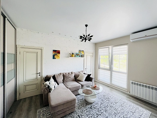 2 изолированных комнаты + гостиная с кухней • дизайнерский евроремонт • кондиционеры • 15 мин до моря | огорожена территория • машино-место • детская площадка • школа • магазины | экспортируемая кровля • тупиковый заезд