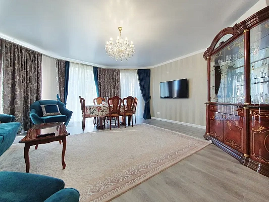 Продам квартиру площадью 100 м2, распланирована в две изолированные спальные комнаты, просторный зал, кухню, два с/у, гардеробную комнату.