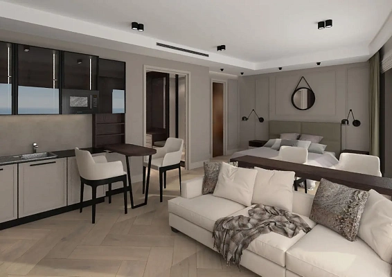 Вокруг сформирована развитая инфраструктура, в шаговой доступности расположены лучшие рестораны, кафе и бутики европейского уровня. В 2-х минутах ходьбы расположен пляж и набережная, 10-ти минутах ходьбы находится Зимний театр, в 15-ти минутах Морской порт, Цирк 3 минуты пешком, Яхт-клуб 17 минут, до Красной Поляны на машине 1час, до Аэропорта на машине 20 минут.