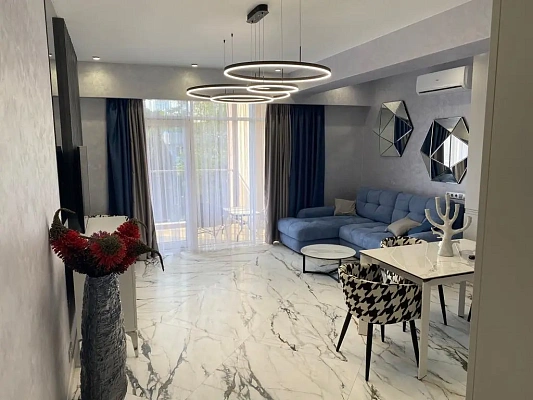 Апартаменты с дизайнерским ремонтом в комплексе бизнес-класса для сдачи и отдыха. Апартамент распланирован в просторную гостиную с зоной кухни и отдельную спальню с гардеробной. С окон и балкона открывается панорамный вид на море, центральную набережную города и парк имени Фрунзе. Комплекс расположен в туристическом центре города, в пешей доступности расположены прогулочные зоны центральной набережной, парка Фрунзе, летний и Зимний театры города Сочи. В микрорайоне, где расположен комплекс, находится все необходимое для жизни и отдыха.
