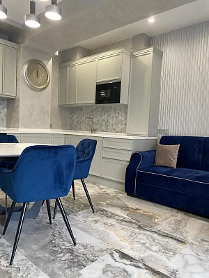 Апартамент распланированный в гостиную с выделенной зоной кухни и спальню с гардеробной. В апартаменте выполнен дизайнерский ремонт. Апартамент находится в комплексе бизнес-класса с придомовой парковкой и закрытой территорией. Апартаментный комплекс Светлана-парк находится в туристическом центре города Сочи рядом с центральной набережной города Сочи, в пешей доступности находятся прогулочный парк имени Фрунзе, Летний и Зимний театры, гостиницы Жемчужина с зоной спа. Также в пешей доступности в микрорайоне находится все необходимое для жизни и отдыха, а именно школы, детские сады, спортзалы, супермаркеты и т.д.