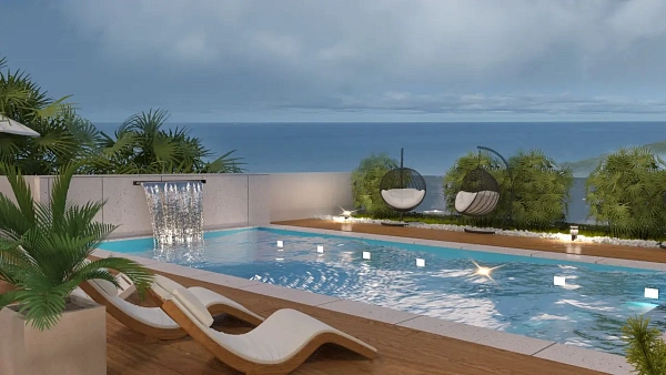 Участок подготовлен - проведены дорогостоящие земляные и бетонные работы, возведена подпорная стена 40 м, залито 50 свай под дом, опорную стену, бассейн.