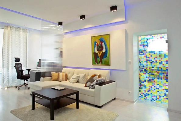 Просторная кухня-гостиная, спальня, санузел и балкон. В квартире выполнен ремонт в дизайнерском стиле.