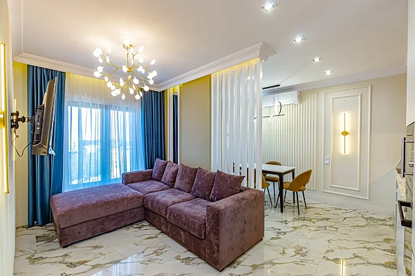 В квартире выполнен качественный дизайнерский ремонт с применением отделочных материалов премиум класса, итальянская мебель и современная техника. Все окна панорамные с потрясающим видом на море.