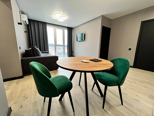 Квартира на высоком этаже с видом на речку, город и море, полностью меблированная - прекрасный вариант как для проживания , так и для сдачи внаём.