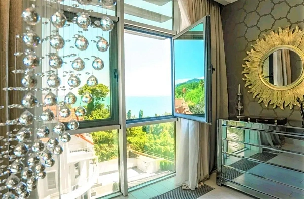 Квартира с новым дизайнерским ремонтом с балконам и панорамным видом на море, с общей площадью 130м2, из них просторная кухня гостиная с продуманной зоной готовки и обеденной зоной с панорамным остекление с красивым видом на море и зелень, выделенная спальная комната с панорамным остеклением с видом на море, большой холл, гардеробная, совмещенный санузел с ванной, все комнаты укомплектованы мебелью и техникой именитых брендов, по всей квартире теплый пол, центральные коммуникации.