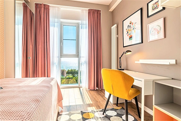 В квартире есть открытый балкон. Панорамное остекление. Прямой вид на море!