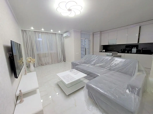 Продается квартира с новым дизайнерским ремонтом с общей площадью 65 м2, из них: просторная кухня гостиная с продуманной зоной готовки и обеденной зоной, зона тв,