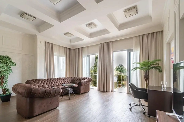 Очень высокие потолки (420 см) создают ощущение вашего нахождения в фойе гостиницы. Возможно, частичное обустройства второго уровня.