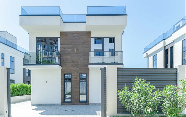 Все дома спроектированы в стиле хай-тек, с витражным остеклением , ландшафтным дизайном, парковочным местом и конечно же бассейном.