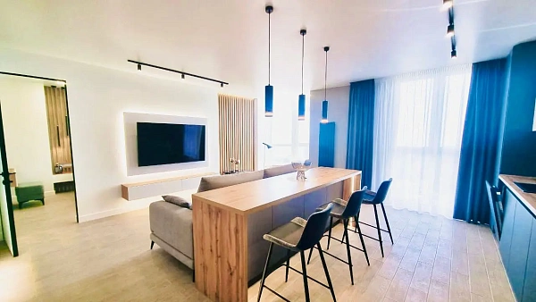 Качественный ремонт, панорамные окна, высокий этаж, прекрасный вид на город. Квартира продаётся с мебелью и техникой.