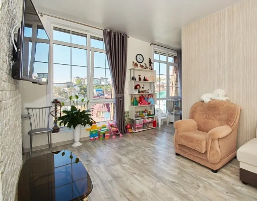 Продается в р-оне Адлера (Голубые Дали) с отличным дизайнерским ремонтом, 2- комнатная квартира, общ.пл. 42/25/кухня студия, с/у совмещен.