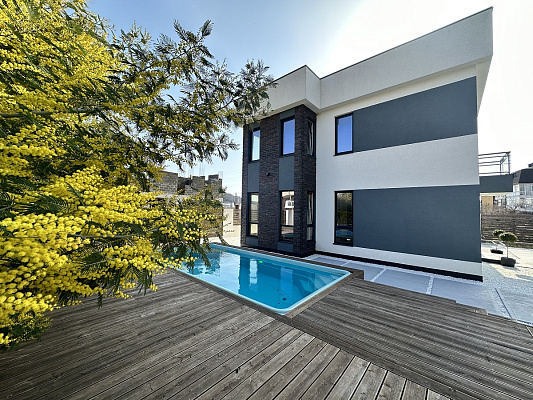 Фасад из качественных современных материалов, выполнено благоустройство, бассейн 6×3, детский уголок, мини сад.