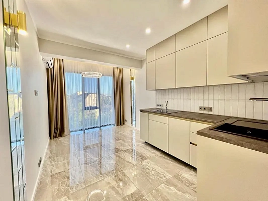 Квартира с новым ремонтом , выполненным из качественных материалов , изюменка квартира - балкон с видом на город и море.