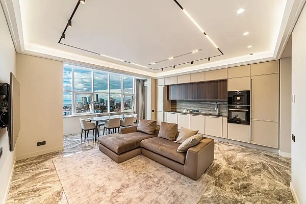 Квартира с видом на море. Площадь 109 кв. метр (распланирована в 2 изолированные спальни, большую кухню-гостиную, 2 сан узла, лоджия). Высокие потолки. Большая ванная комната. Дизайнерский ремонт. Мебель и техника новые . Тёплый пол. Высокий этаж.