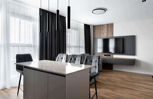 В трех минутах от моря в новом доме элит-класса продается трехкомнатная квартира с дизайнерским ремонтом. Квартира планируется в просторную кухню-гостиную, две изолированные спальни, гардероб и совмещенный санузел. В Квартире выполнен новый ремонт из качественных материалов, обставлена дорогой мебелью и техникой.