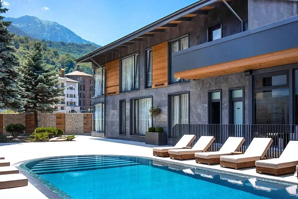 Развитая инфраструктура: казино, рестораны, набережная реки Мзымта, аквапарк, станция канатной дороги, парк "Времена Года", ТРЦ "Горки Молл".