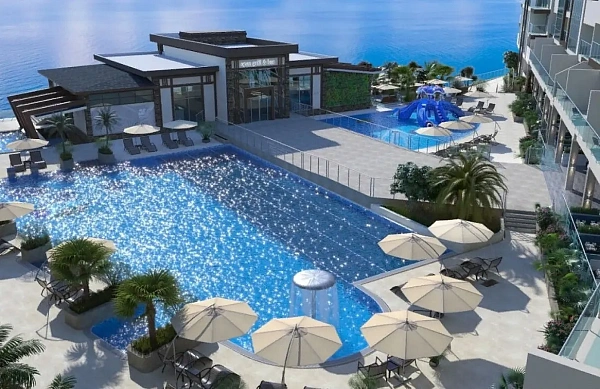 «Лазурный берег» - все что нужно для жизни у моря. Это прекрасный вид на Черное море, собственный пляж, стильные террасы на свежем воздухе, ресторан, спортивные площадки и прекрасная благоустроенная территория. Комплекс разместился в Лазаревском районе, который славиться тихими и благоустроенными местами для отличного отдыха и комфортной жизни. До моря 870 метров. Комплекс оснащен разнообразной инфраструктурой — коммерческие площади заняты под спа-центр и фитнес-зал. Отдельный оазис на возвышенности расположенный на территории дендропарка с реликтовыми буками и самшитами. В лесу. Воздух, пение птиц.