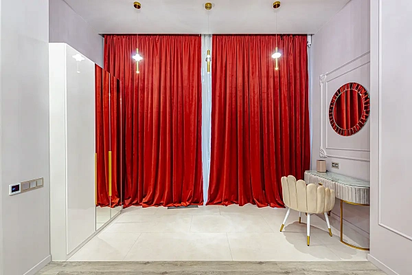 В апартаментах выполнен современный дизайнерский ремонт который отлично сочетается с панорамными окнами. Высокие потолки 4.5м значительно увеличивают объём апартаментов. Установлена автоматизированная система управления всеми приборами в доме. Одна изолированная комната, кухня-гостиная и второй ярус апартаментов отлично подойдут для отдыха с детьми.