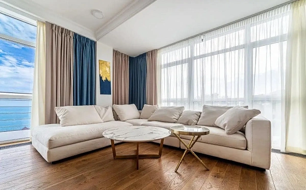 В апартаментах сделан новый ремонт в светлых тонах.