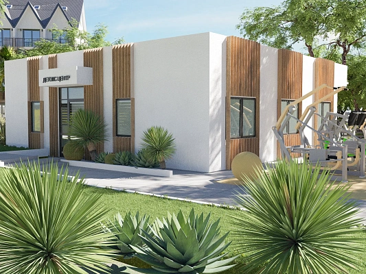 Комплекс оборудован закрытой охраняемой территорией, круглогодичными бассейнами с подогревом, спа комплексом, детокс центром, зоной барбекю, зоной воркаут и детским площадками.