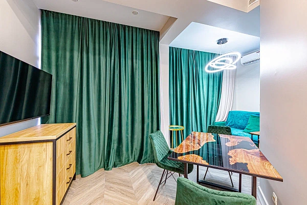 56 м2 удобная планировка, подходит как для собственного проживания так и для сдачи в аренду. Выполнен дизайнерский ремонт. Кухня-гостиная, выделенная спальня. с/у, гардеробная, терраса.