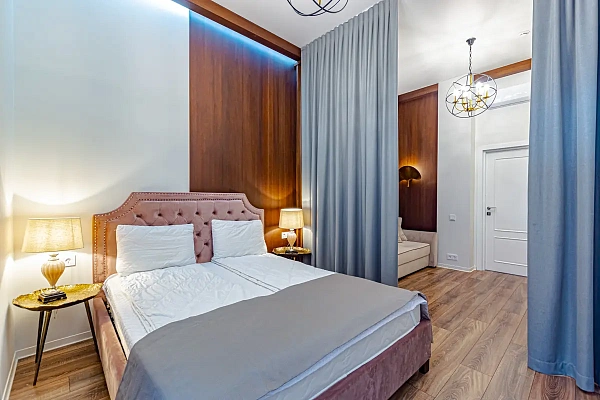 3х комнатные апартаменты с дизайнерским ремонтом, мебелью и техникой. Две раздельных спальни, просторная кухня-гостиная. Размещение до 8 человек. Готовый, высокорентабельный бизнес с быстрой окупаемостью в эпицентре горнолыжного курорта.
