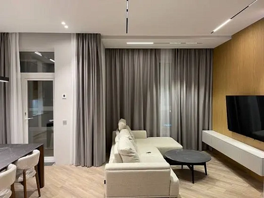 В квартире выполнен новый дизайнерский ремонт, установлена дорогая мебель и техника. Большие окна выходят в сторону моря, дают много света.
