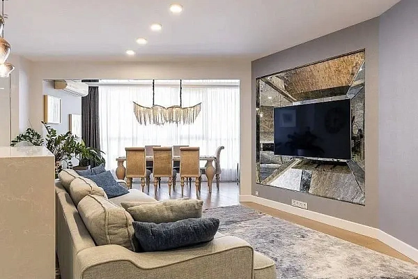 160 м - две выделенные спальни, кухня-гостиная, гардеробная, терраса с бассейном и зоной отдыха. Выполнен качественный дизайнерский ремонт.