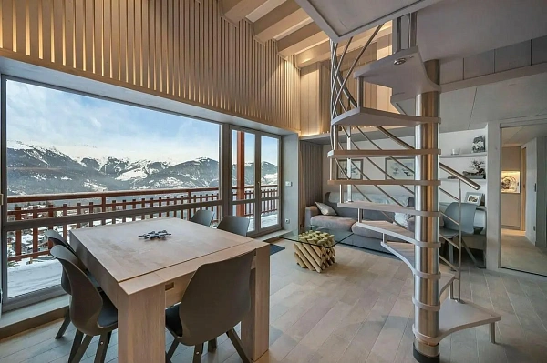 Благодаря большим витражным окнам из апартаментов открывается потрясающий вид на горы.