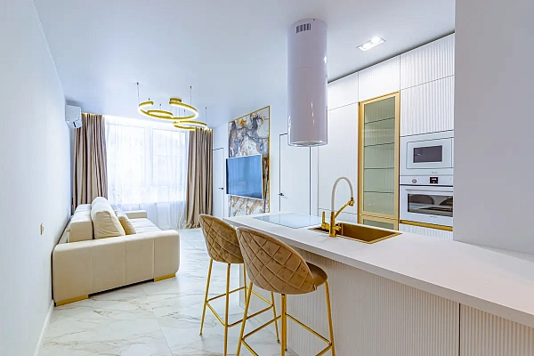 Выполнен качественный дизайнерский ремонт.