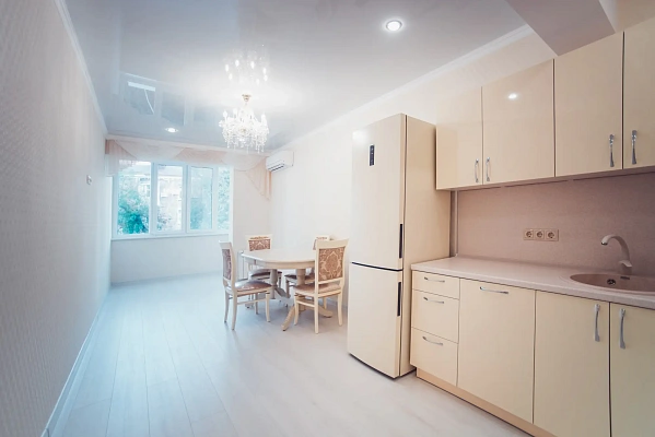 Новая квартира в новом доме бизнес класса, распланирована в 2 спальные комнаты и просторную кухню - столовую.