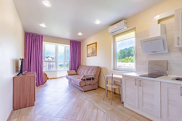 Квартира распланирована в студию, очень светлая и уютная. Очень хороший вид на море.