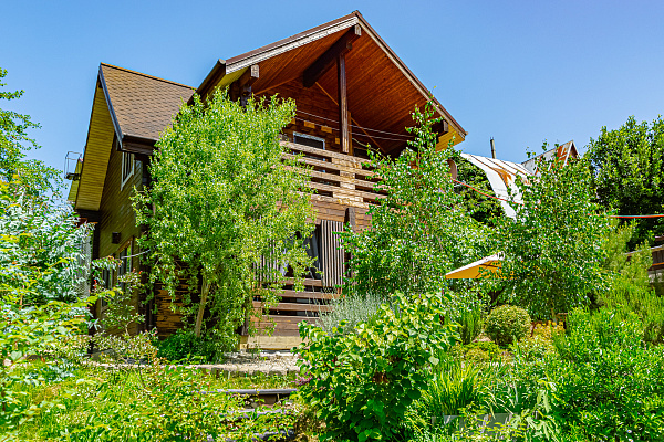 В саду высажены декоративные и плодовые деревья и кустарники, что даёт тень и уют нашими летними днями!