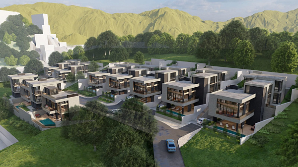 Коттеджный посёлок состоит из девяти домов.
