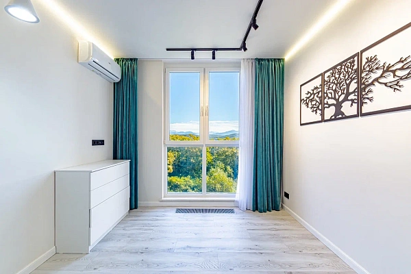 37м — выделенная спальня, кухня-гостиная. Расположена на высоком этаже, откуда открывается вид горы и боковой на море. В квартире выполнен новый дизайнерский ремонт.