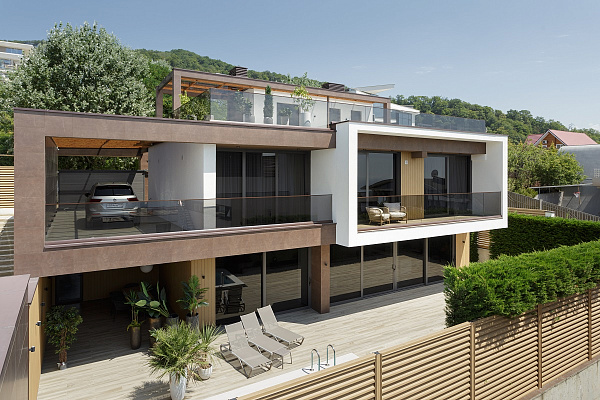 За счет того, что коттедж расположен на возвышенном участке, из его окон открывается очень красивый вид на море и панораму самого микрорайона. Очень много зелени и солнца. Здесь вы сможете в самом полном объеме насладиться благами курортного города!