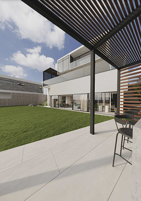 Архитектура виллы гармонично вписана в общий ансамбль застройки посёлка. Красивый дизайн ландшафта придомовой территории отлично дополняет общую стилистику дома, подчеркивает его красоту, изысканность!