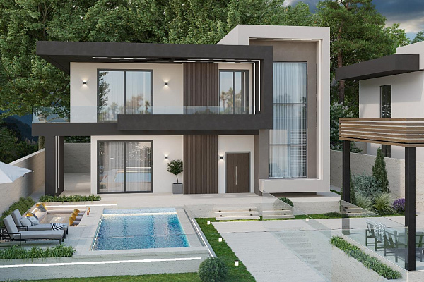 Шикарный дом, в современном стиле ХАЙ-ТЕК, собственный бассейн, дом 240 квадратов +120 квадратов эксплуатируемая крыша свет 15 кВ , вода центральная , септик , газ , 2 гаражных места